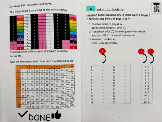 Belajar sifir 1 dengan pelan 5langkah.